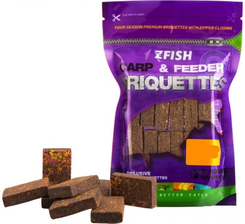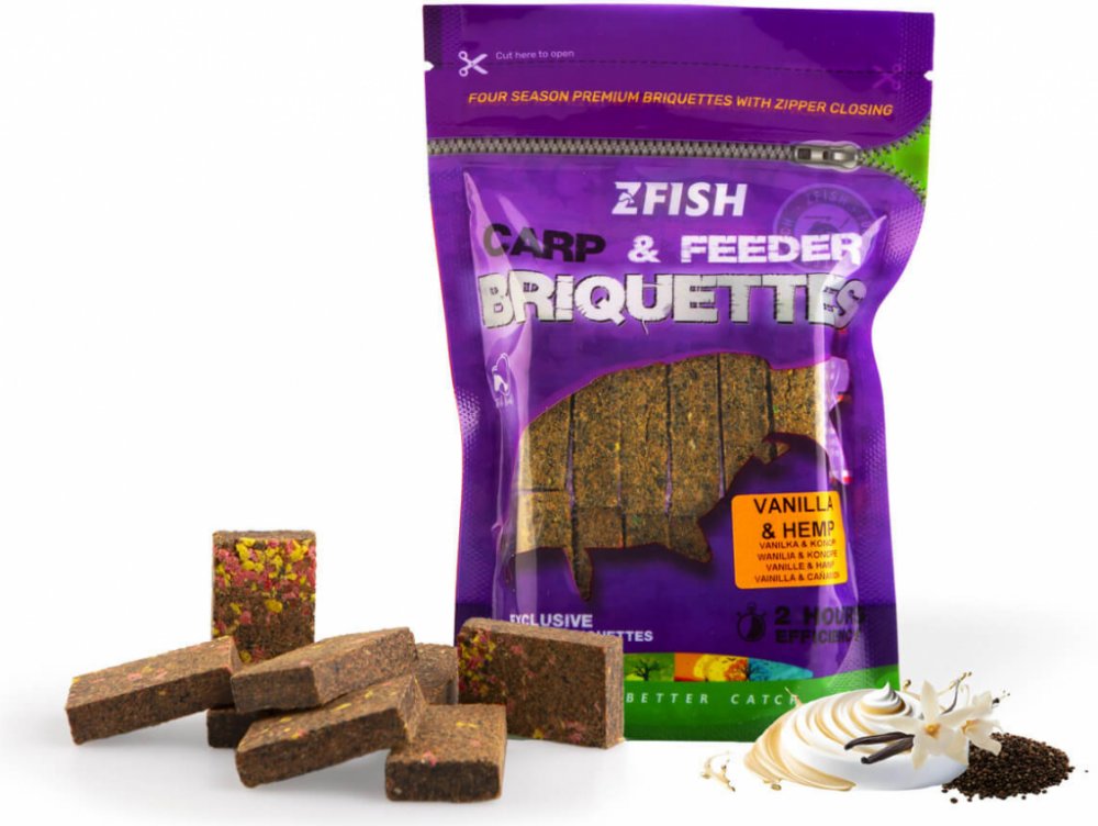 ZFISH Briquettes jsou žhavá novinka v našem krmném programu. Jedná se o velmi kvalitní a tlakově slisovaný, drobný partikl s krmítkovou směsí a anglickou vločkou, do tvaru malých kvádrů ( briket ).