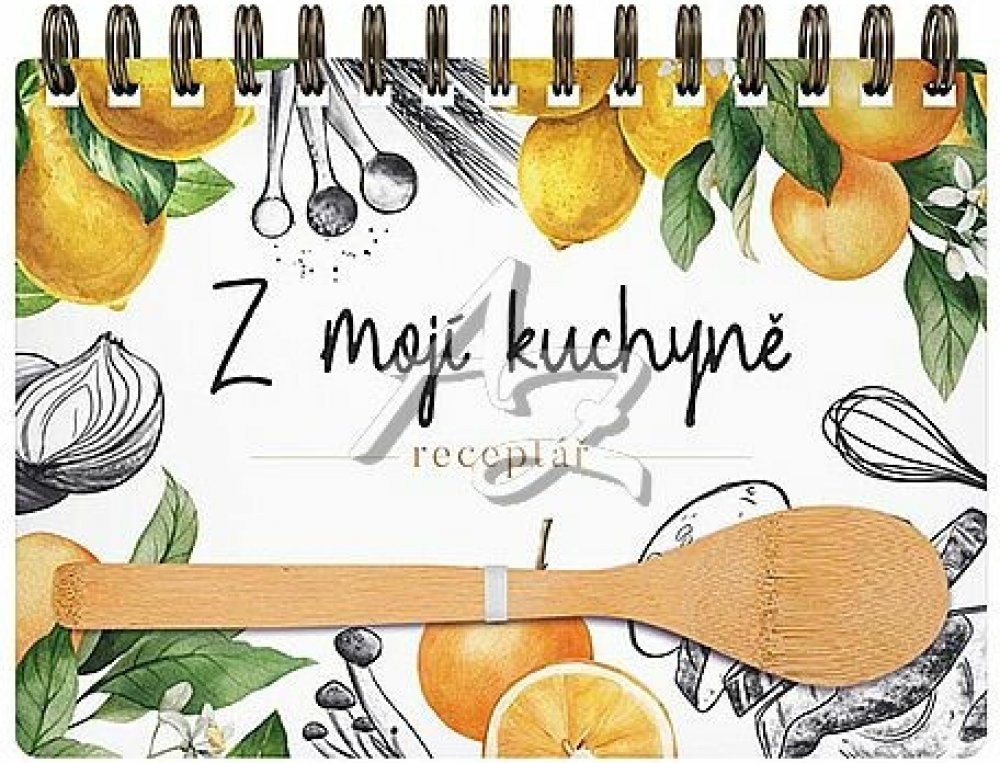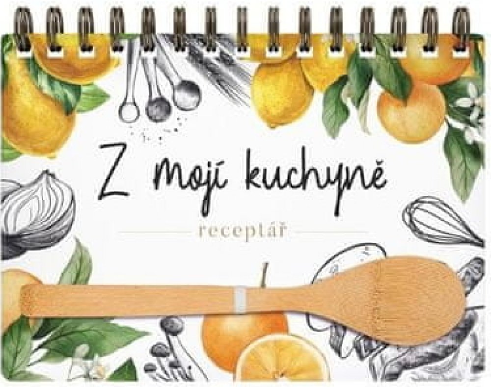 Kniha na recepty s vařečkou, se spoustou praktických vychytávek. Knihu jsme schválně situovali na šířku. Při práci v kuchyni si ji můžete postavit jako kalendář. Nezabere tím pádem tolik místa, jako kdyby byla položená na pracovní ploše, a tak se i méně zašpiní. Navíc kuchařek s formátem na šířku je rozhodně méně. A kdo by nechtěl být originální? Kniha je opatřena gumičkou proti samovolnému otevře...