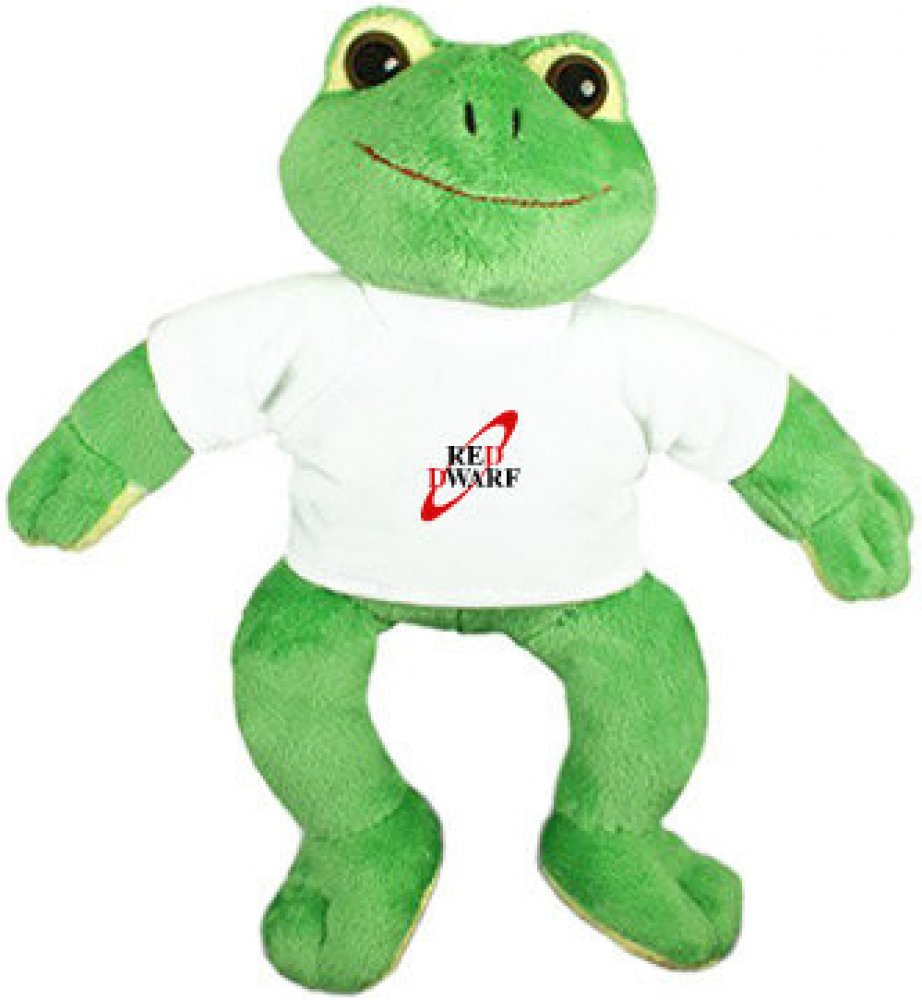 Kultovní seriál Červený trpaslík (Red Dwarf) jako skvělý potisk na dárky.. Veselá plyšová žába 27cm velká s tričkem. Tričko je vyrobeno zo 100% polyesteru a je možné ho svléknout a vyprat. Krásný dárek pro děti nebo pro zamilované. Hračka není vhodná pro děti do 3 let.