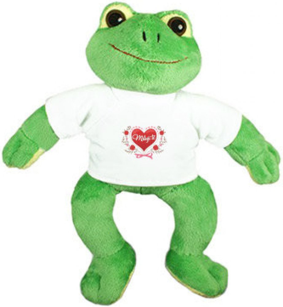 . Veselá plyšová žába 27cm velká s tričkem. Tričko je vyrobeno zo 100% polyesteru a je možné ho svléknout a vyprat. Krásný dárek pro děti nebo pro zamilované. Hračka není vhodná pro děti do 3 let.