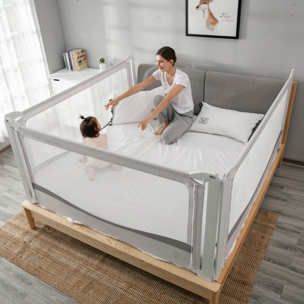Postelová zábrana Monkey Mum® Premium Zábrany na postel lze využít jako 1 ks, 2 ks (do tvaru „L“, nebo naproti sobě), 3 ks (do tvaru „U“) a nebo 4 ks (po obvodu celé postele). Lze je uchytit na téměř jakýkoli typ postele. Při objednání si změřte délky stran vnitřního rámu postele a do košíku vložte