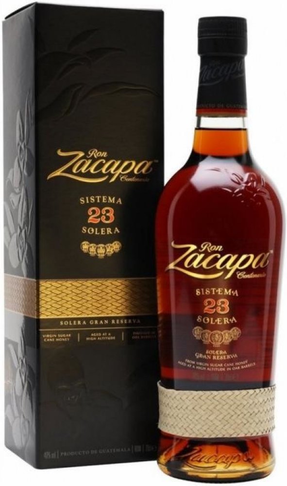 Zacapa Centenario 23 Sistema Solera je ikonický guatemalský rum vyráběný z tzv. „panenského medu“ z cukrové třtiny, nikoliv z melasy. Zraje až 23 let metodou solera v sudech po americké whiskey, sherry a Pedro Ximénez, což mu dodává mimořádnou hloubku. Ve vůni se objevují tóny karamelu, kakaa, sušeného ovoce a koření, na patře pak jemná sladkost, náznak vanilky, medu a hořké čokolády s dlouhým sametovým zakončením. Rum vzniká v nadmořské výšce přes 2300 m, kde pomalé zrání přispívá k jeho jemnosti. Zacapa byla založena v roce 1976 u příležitosti stoletého výročí města Zacapa a dnes je považována za jednoho z lídrů světových prémiových rumů.