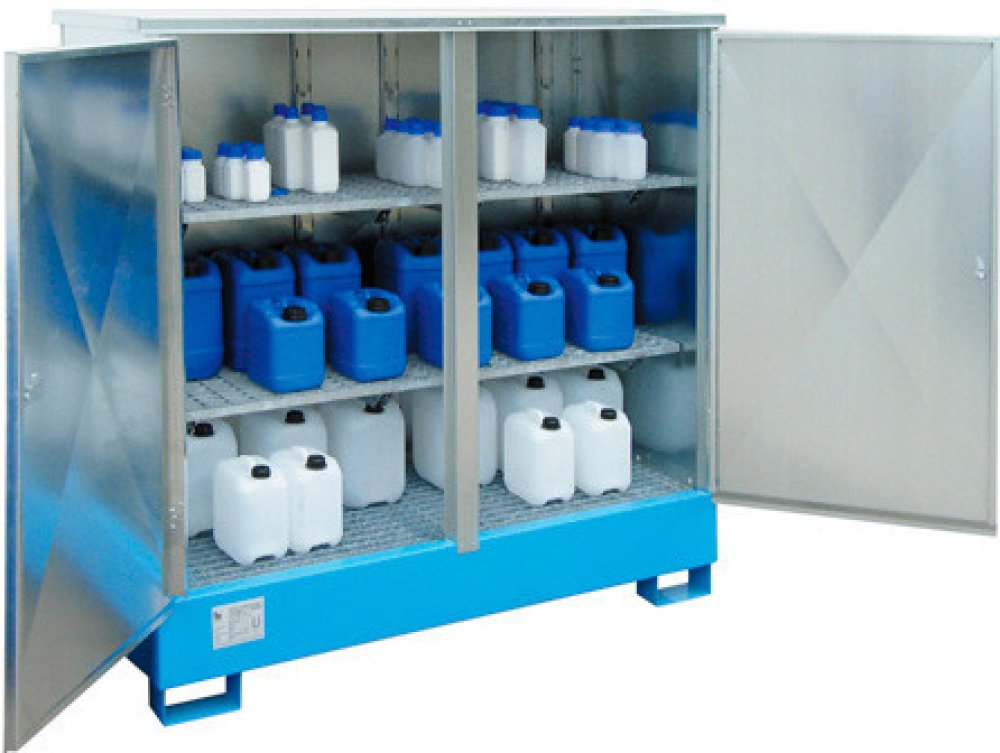 Krytá záchytná vana je vyrobena z kvalitní oceli a opatřena odolnou povrchovou úpravou, která zajišťuje chemickou i mechanickou odolnost. Můžete počítat s dostatečným záchytným objemem až 220 l a nosností až 500 kg. Vana je vybavena vyjímatelným roštem, který je povrchově upraven žárovým zinkováním, což zajišťuje odolnost vůči korozi. Paleta je uzamykatelná pro zamezení přístupu neoprávněným osobá...