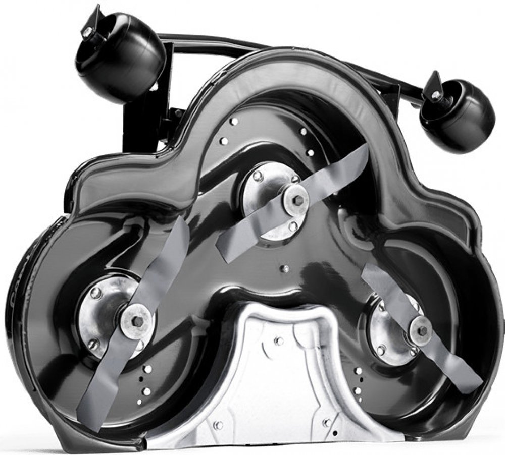 Žací ústrojí se třemi noži poskytuje prvotřídní zarovnání po pravé i levé straně žacího ústrojí a zanechá stejně velký neposečený kruh trávy bez ohledu na jakou stranu zatáčíte.