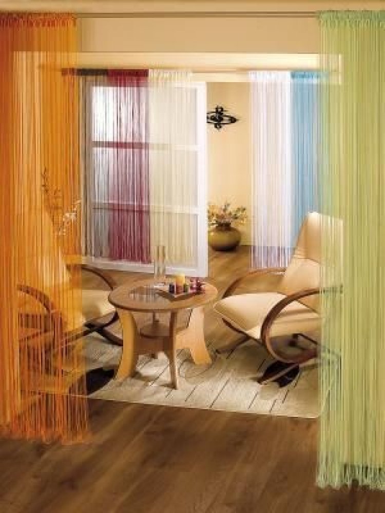 Provázková záclona AGA sluší i větším oknům (tzv. francouzská okna).