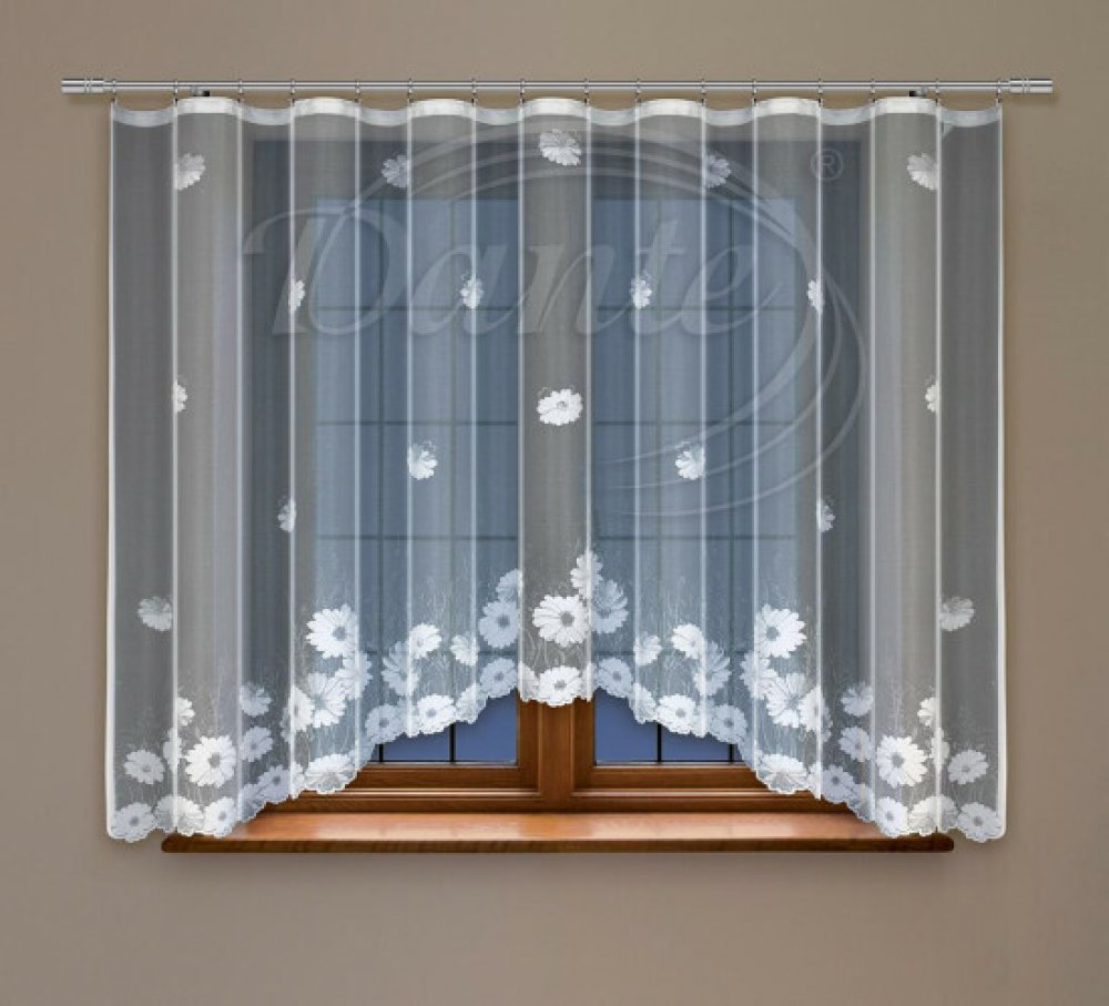 Překrásná kusová oblouková záclona posetá květy kopretin.