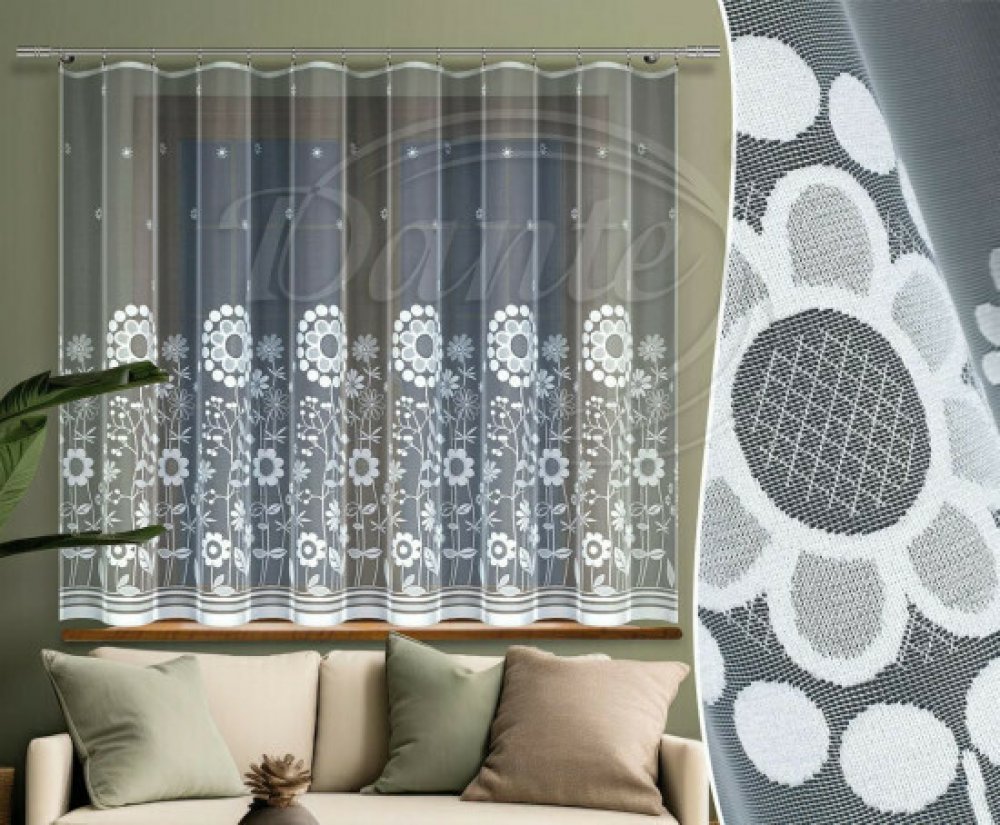 Překrásná bílá záclona s motivem kytiček rozveselí každou místnost Vašich domovů.