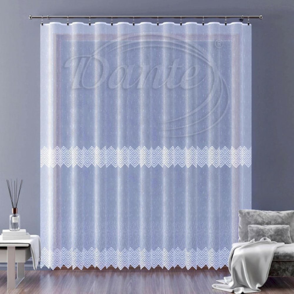 Tato bílá záclona zaujme svým jemným geometrickým vzorem ve spodní části, který dodává elegantní a moderní vzhled. Hodí se do obývacích pokojů, ložnic či pracoven, kde vytvoří harmonické prostředí a podtrhne styl interiéru.