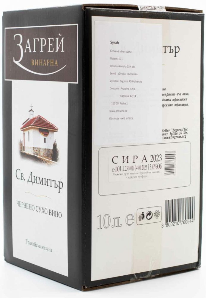 2024 13.0 % Zagreus Winery Bulharsko 10 l Syrah tichá červená suchá karton středně plná kořenitá / ostružinová / rybízová / ovocná
