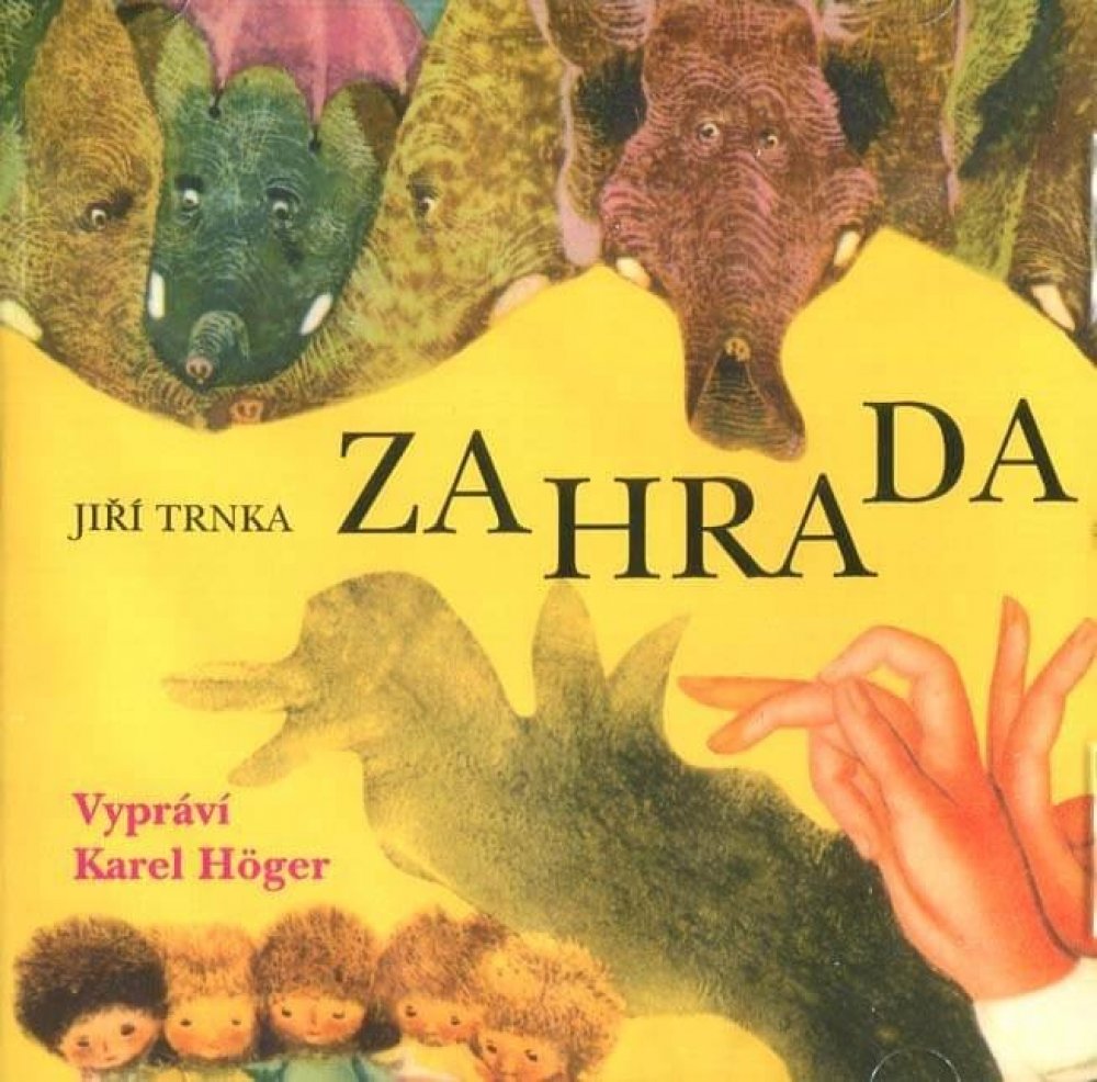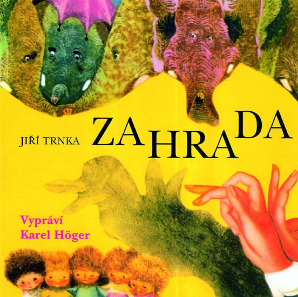 Setkání dvou mistrů - Karla Högera a Jiřího Trnky nad jednou nádhernou pohádkou. K umělcovu výročí jsme rádi upozornili na jeho mimořádnou dětskou knihu, čtenou Karlem Högerem. Hercova interpretace souzní s autorovým textem, když mistrně rozehrává nuance nevysvětlitelných záhad kouzelné zahrady, takže poslech může být zážitkemnejen pro děti, ale i jejich rodiče. Fantazijní příběh má pět dětských hrdinů, dále pět slonů, jednoho zlomyslného kocoura, jednoho trpaslíka a spoustu psů, kteří si do tajemné zahrady, kde sedějí zázraky, chodí pít psí víno. Sloni zde klukům sehrají divadelní představení s názvem Šípková Karkulka, se psy zažijí kluci veselý večírek, ale především si užijí zábavy s potměšilým a poťouchlým kocourem. Pohádkový příběh mohou znát děti i z animovaného filmu Břetislava Pojara.