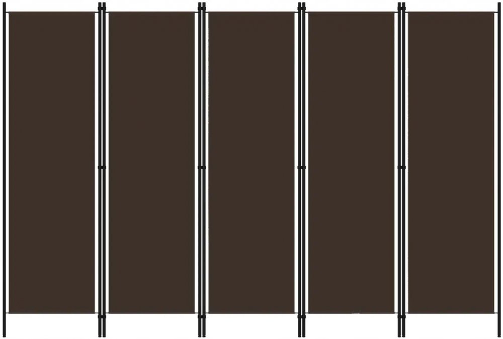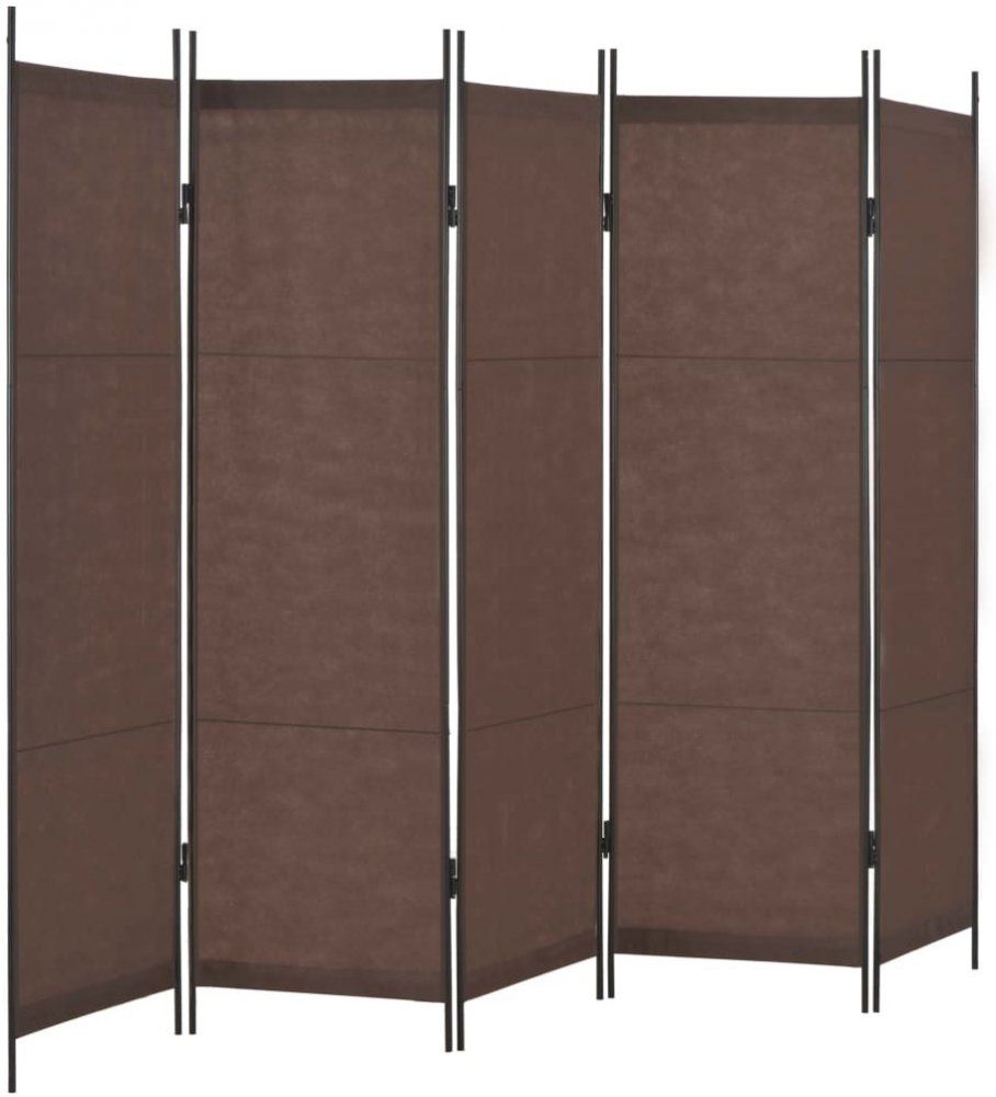 Tento volně stojící a praktický pětipanelový rozdělovač místností lze použít jako příčku, zástěnu pro soukromí nebo dekoraci. Poskytuje soukromí v ložnici, ale lze jej použít i k rozdělení místnosti.Tento rozdělovač místností je vyroben z práškově lakovaného železného rámu a látkových zástěn a lze jej snadno složit, když se nepoužívá.Poznámka: Látka nebrání světlu úplně.Barva: hnědáMateriál: tkanina (100 % polyester), práškově lakované železoCelkové rozměry: 250 x 180 cm (š x v)Velikost látkového stínidla: 46,5 x 175 cm (š x v)Skládá se z 5 prvkůNutná montáž: Ano
