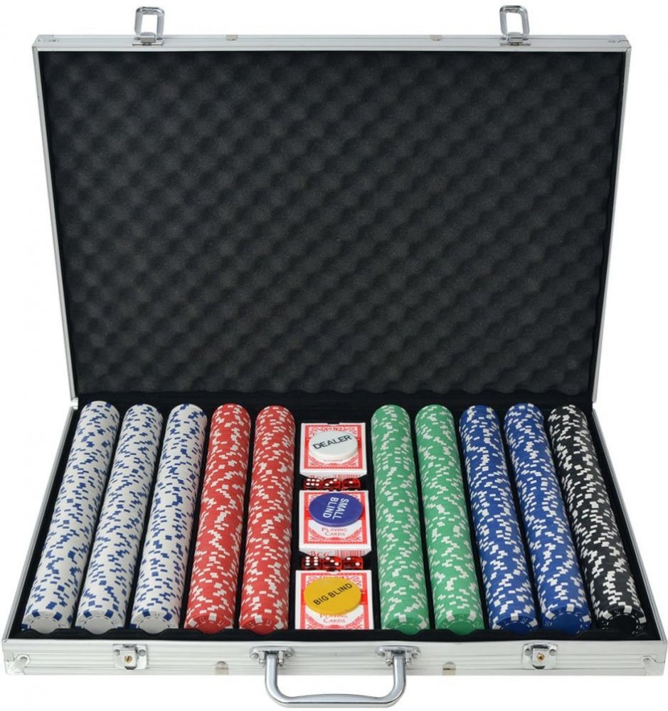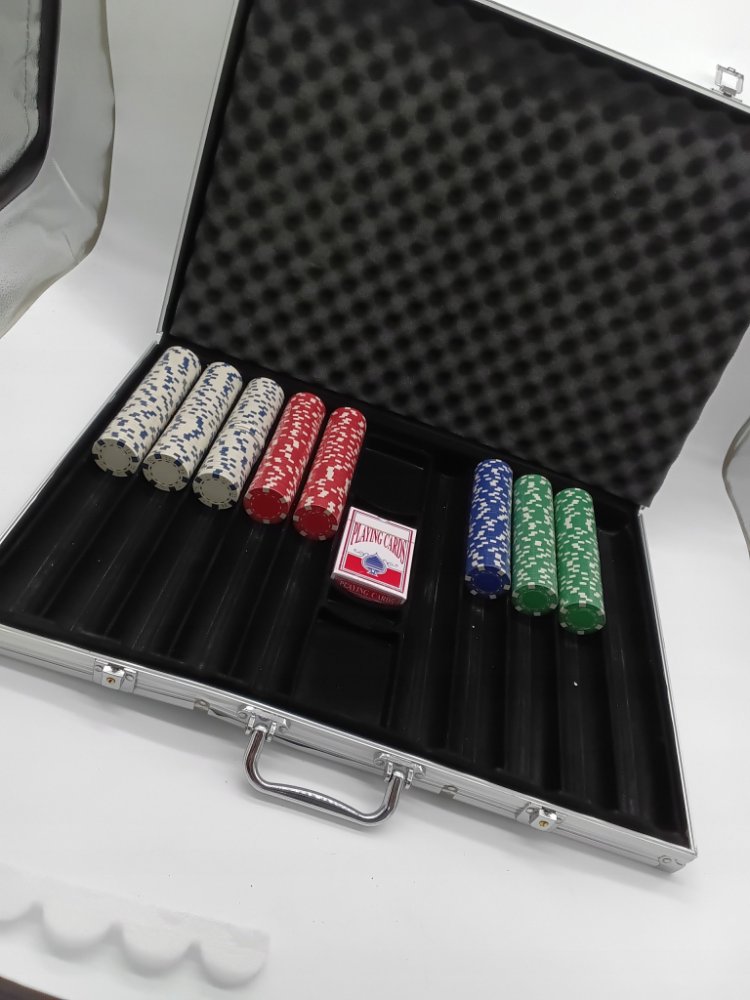 Tato sada obsahuje 6 kasinových kostek, 3 balíčky karet, 1 žeton small blind, 1 žeton big blind, 1 žeton Dealer a 1000 žetonů. Tato sada je dodávána v hliníkovém pouzdře.