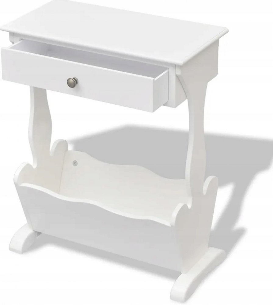 Tento elegantní a elegantní stojan na časopisy vám pomůže ukládat vaše oblíbené noviny stylově a po ruce. Skříňka na časopisy s velkou zásuvkou poskytuje dostatek místa pro uložení časopisů i jiných předmětů. Můžete tento produkt také použít jako noční stolek nebo skříňku u postele a umístit ho k pohovce, denní posteli nebo do ložnice a uložit své oblíbené časopisy s chutí na pohodlné místo! Tento stojan na časopisy se hodí téměř do každého interiéru.