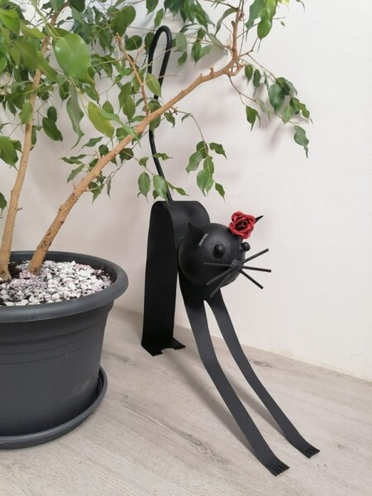 Kovové dekorace na tyči, takzvané zápichy, zajímavým způsobem ozdobí záhony i květináče. Ozdobte si i vy záhon touto dekorací ve tvaru kočky s motýlem, který ,,poletuje". Motýl je připojený k odpružené tyči, která se pohybuje větru.