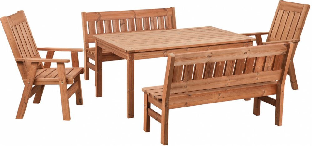 Prokom R & S dřevo stůl + 2 lavice + 2 židle 100 kg