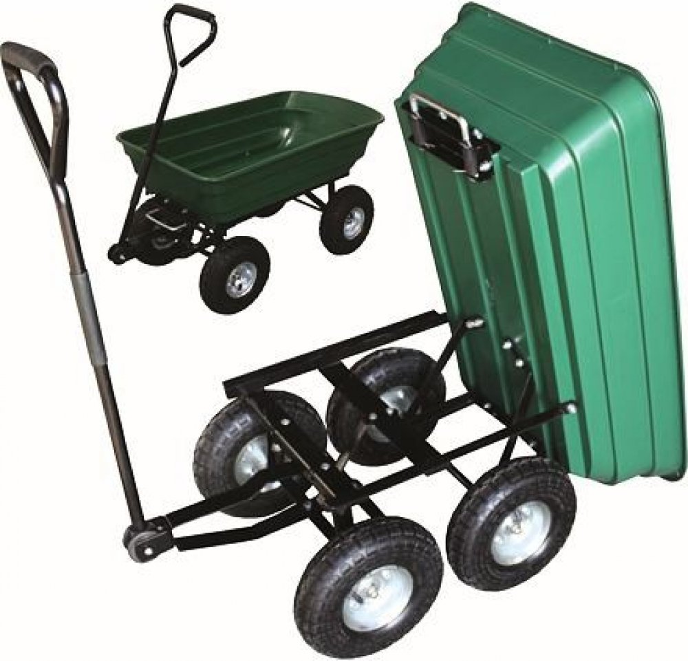 Vozík je praktickým pomocníkem na vaší zahradě. Ideální pro odvoz zahradního odpadu, trávy, sena nebo nářadí.