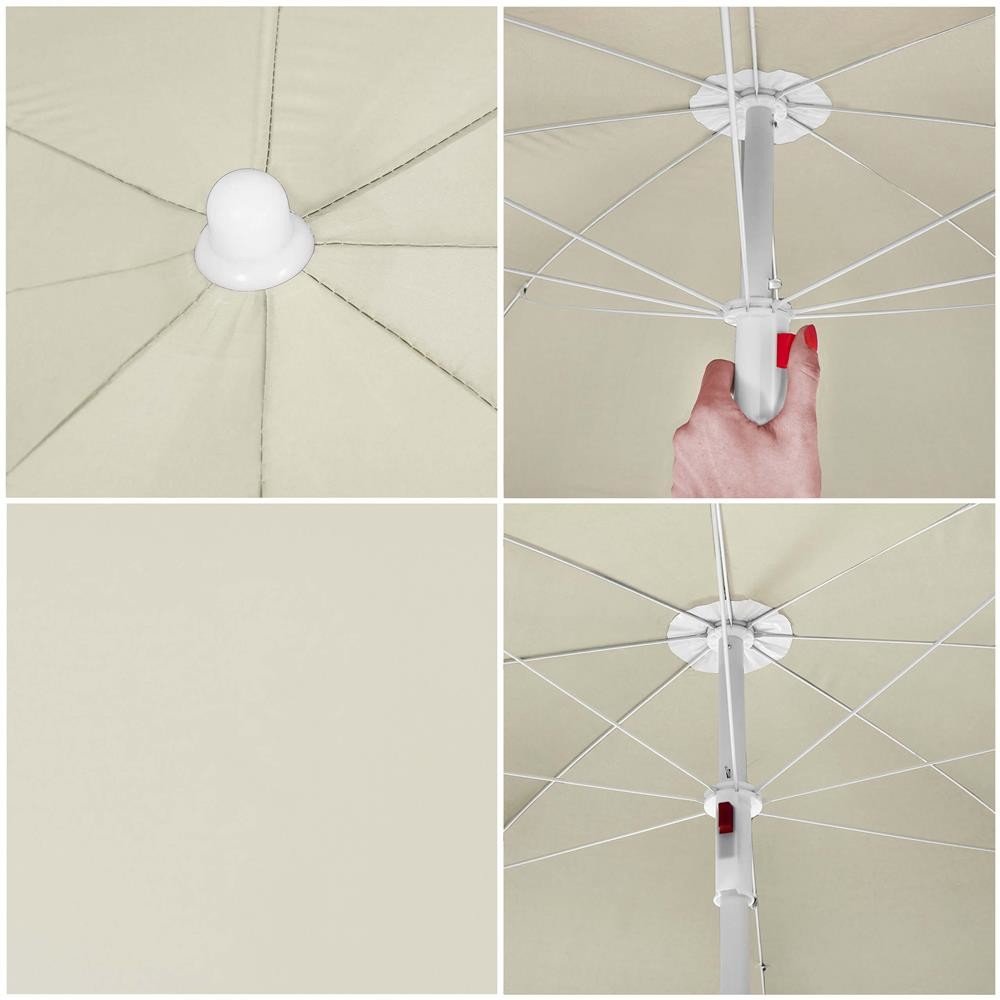 Praktický slunečník pro zahradu, balkon i pláž. Nastavitelná výška a hrot pro zaražení do země umožňují snadné použití v různém terénu. Voděodolná stříška z 8 panelů poskytuje ochranu před sluncem i lehkým deštěm. Díky kompaktní velikosti a přepravní tašce se pohodlně přenáší. Lze využít i jako velký deštník. Průměr 145 cm.