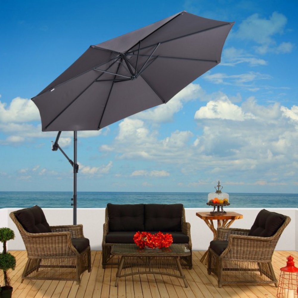 Zahradní slunečník s boční nohou a klikou 300 cm GOLETO GL1800R šedý
