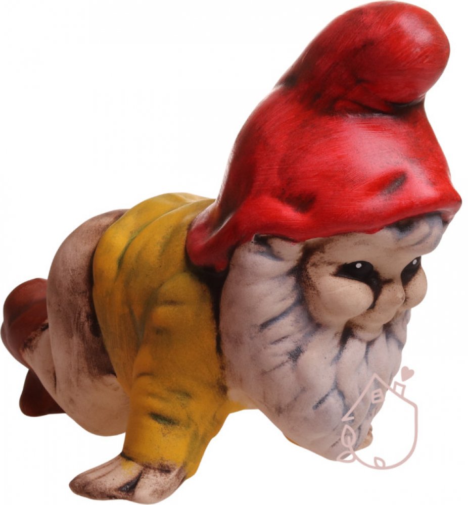 Malý vousatý trpaslík, lezoucí po všech čtyřech je vyrobený z mrazu odolné keramiky a díky tomu může být na zahradě celý rok.
