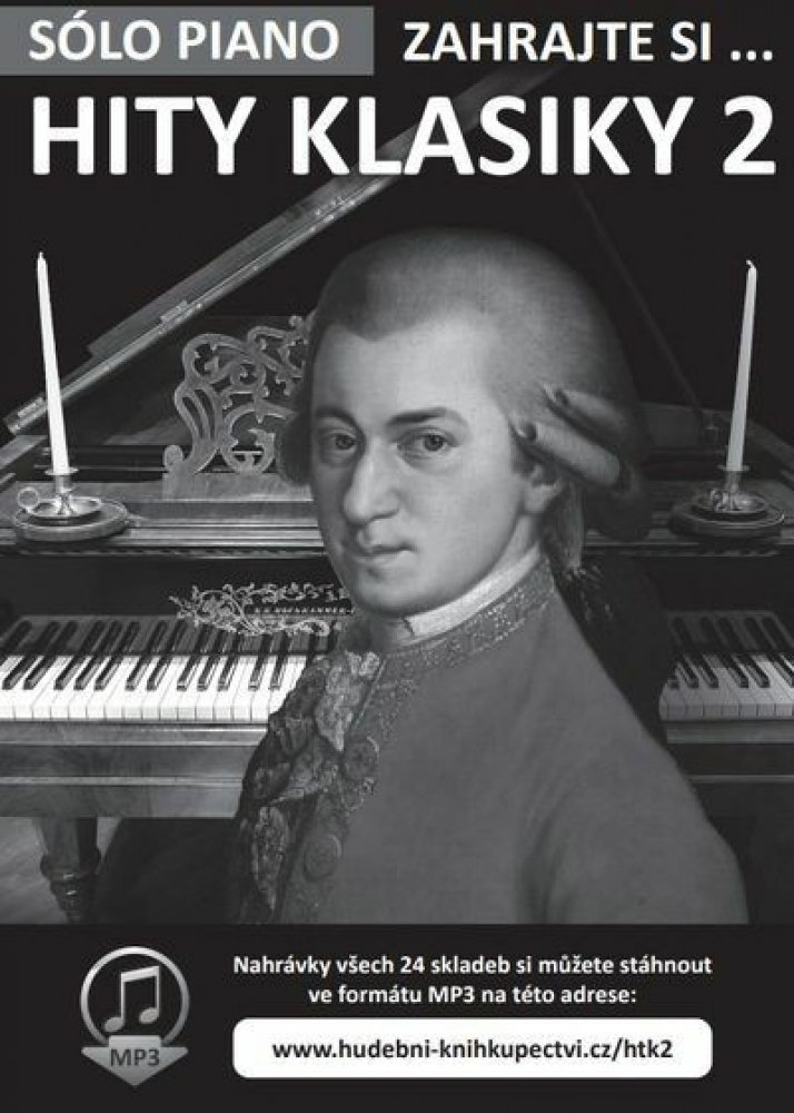Noty na snadný sólo klavír. Druhý díl úspěšného titulu Zahrajte si … Hity klasiky, doplněného o bonus ve formě demonstračních ukázek všech 24 skladeb ve formátu Mp3, které si můžete stáhnout z webové adresy, kterou najdete v knize. Antonín Dvořák - LargoAntonio Vivaldi - JaroBedřich Smetana - VltavaErik Satie - Gymnopédie no. 1Franz Xaver Gruber - Tichá nocFryderyk Chopin - EtudaFryderyk Chopin - Polonéza č. 3Georges Bizet - HabaneraGeorges Bizet - Toreadorova píseňGioacchino Rossini - Lazebník sevillskýGioacchino Rossini - Vilém TellGiuseppe Verdi - Va, pensieroGiuseppe Verdi - Ó, jak je měnivé…Jacques Offenbach - BarcarolleJohann Sebastian Bach - Menuet v GLudwig van Beethoven - Měsíční sonátaLudwig van Beethoven - Óda na radostLudwig van Beethoven - OsudováLuigi Denza - Funiculi, FuniculaMarc-Antoine Charpentier - Preludium k Te DeumScott Joplin - The EntertainerWolfgang Amadeus Mozart - Menuet v FWolfgang Amadeus Mozart - Turecký pochodZdeněk Fibich - Poem