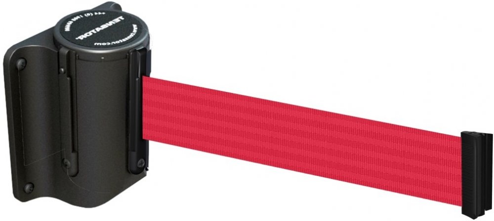 Zahrazovací nástěnná kazeta Mini, černá – červené pásmo 3,65 m