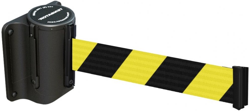 Zahrazovací nástěnná kazeta Mini, černá – žluto-černé pásmo 3,65 m