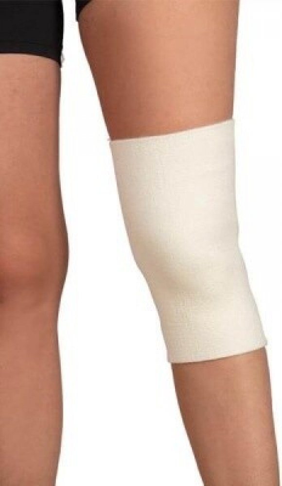 Elastická tepelná ochrana kolenního kloubu, z elastické vlněné prodyšné tkaniny, zpevní mírnou kompresí a zahřívá.