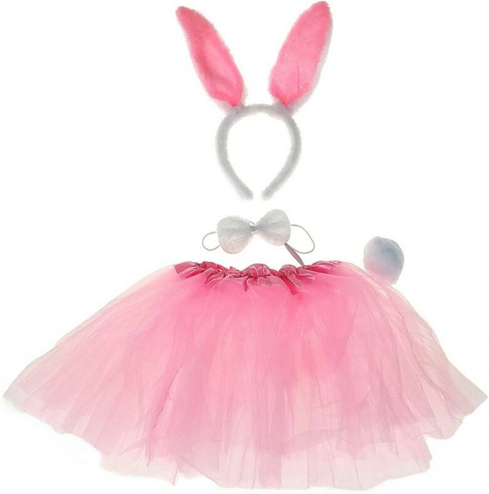 Zajíc - doplněk ke karnevalovému kostýmu. Součástí čelenka s ušima, motýlek, ocas a sukýnka. Růžový zajíček.
