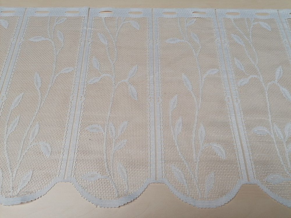 Krátka, moderní, žakárová, vitrážová zaclona  ve třech výškách.