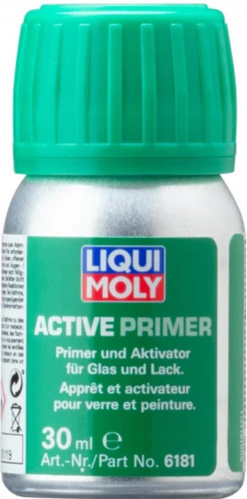 LIQUI MOLY GmbH 6181 Aktivní primerZákladový nátěr typu vše v jednom produktu s doplňkovými funkcemi. Je určený pro technologii lepení skel polyuretanovým lepidlem PU. Slouží jako adhezní prostředek na sklo, keramické sítotisky a laky pro všechny PU lepicí a těsnicí materiály. Současně je Aktivní primer i PU aktivátor pro zbytky PU lepidel, PU přednátěry a RIM vrstvy.Slouží jako adhezní prostředek a UV ochrana pro lepicí a těsnicí materiály při lepení autoskel. Mimo to ještě jako adhezní prostředek pro PU přednátěry např. Volkswagen, adhezní prostředek pro zbytky housenek PU lepidel a RIM vrstvy např. Opel.Před aplikací musí být primer dobře promíchán protřepáním, a to minimálně 45 sekund po uvolnění kuličky.Primer je Konkurenční objednací čísla: 6181 LIQUI-MOLY 6181 Základová barva, lepidlo na skla LIQUI MOLY