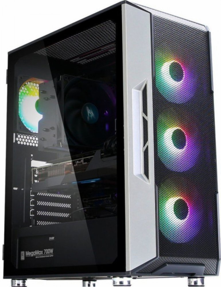 Kvalitní počítačová skříň formátu Middle Tower nabízí tři 2,5" pozice pro SSD disky a dvě 3,5" pozice pro pevné disky. Předinstalovány jsou čtyři 120 mm ventilátory s ARGB podsvícením. Na horním panelu se nachází dva porty USB 3.0, jeden port USB 2.0, sluchátkový výstup a audio vstup pro mikrofon. Ve skříni je dostatek prostoru pro chladič CPU do výšky až 162 mm a grafickou kartu o délce až 355 mm. Důmyslné řešení umožňuje pohodlné umístění až 360 mm dlouhého výměníku vodního chlazení na přední straně. Skříň je vybavena průhlednou bočnicí i předním panelem. Potěší také přítomnost prachových filtrů. Skříň je dodávána bez zdroje.