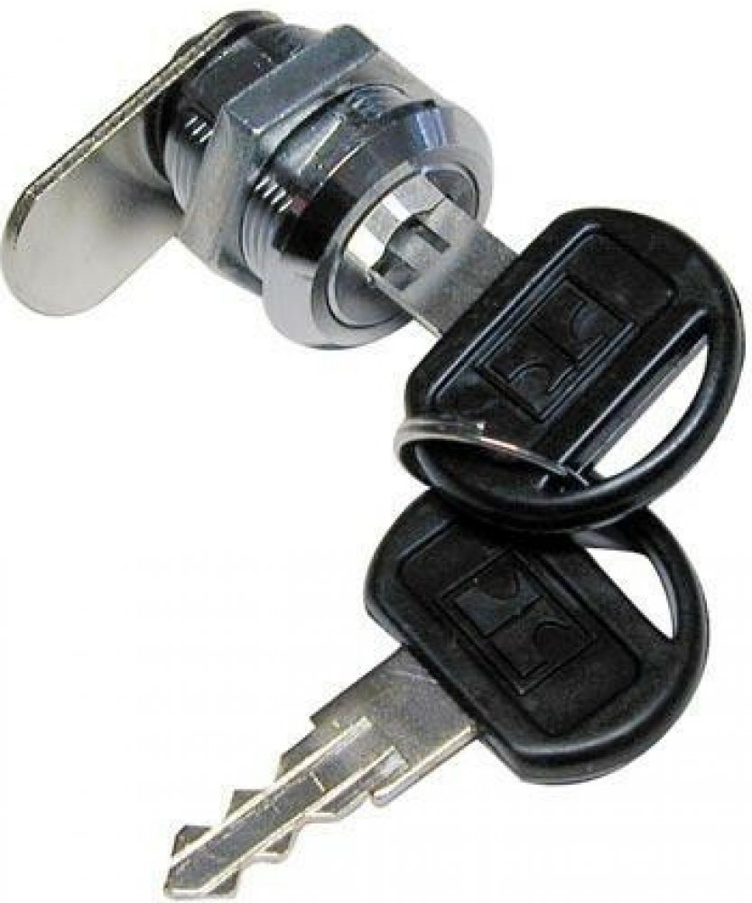 Tento typ zámku je velmi často používaný u kovových šatních skříněk a rozvaděčů k uzamykání dvířek.