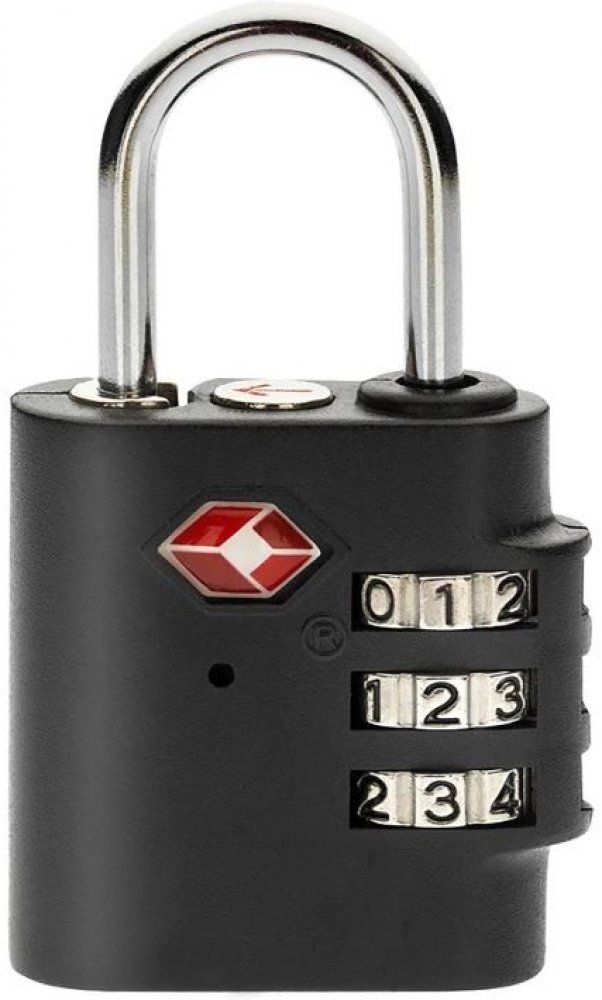 Zámek visací STAR TSA, S52 / 30 mm, kódový. šířka: 30 mm Černý bezpečnostní visací zámek na 3místný číselný kód vhodný pro cestování letadlem. Vybavený doplňkovým odemykáním TSA pro otevření při celní kontrole bez poškození zámku nebo zavazadla.
