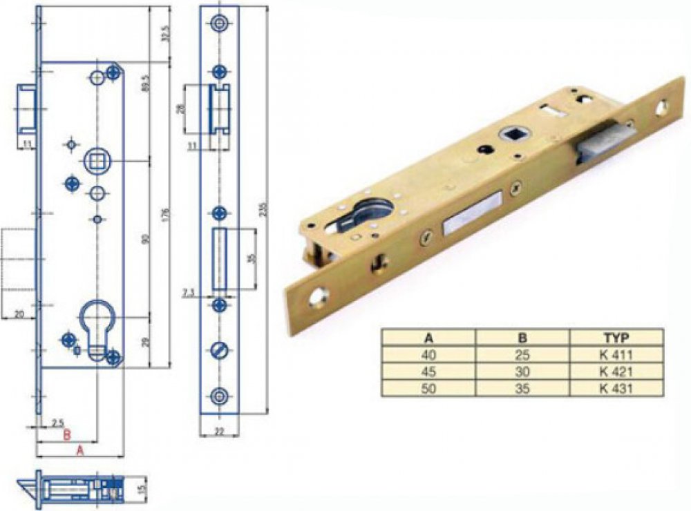 Zámek zadlabací K 431 P-L 35/50/90 ZB