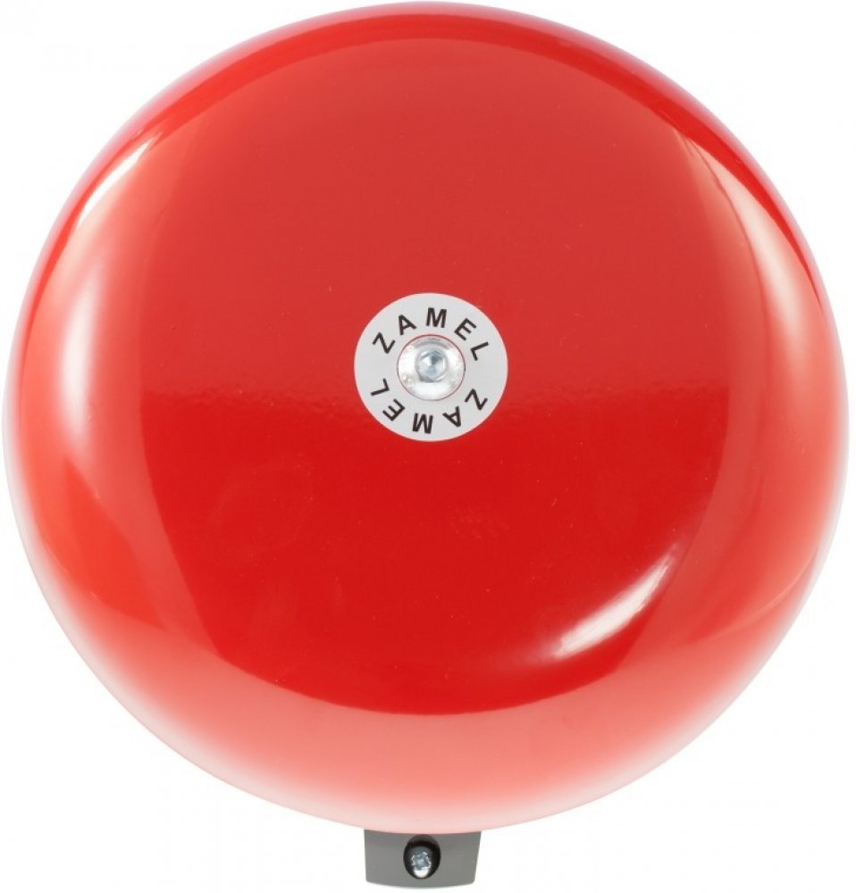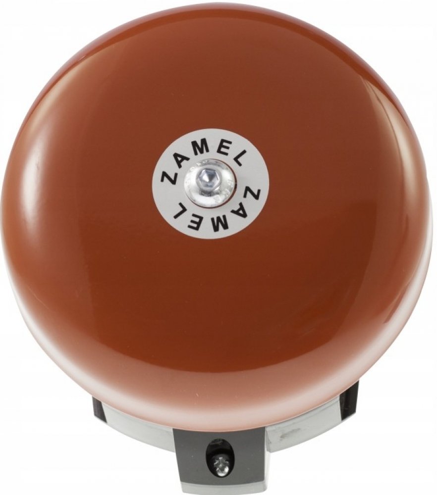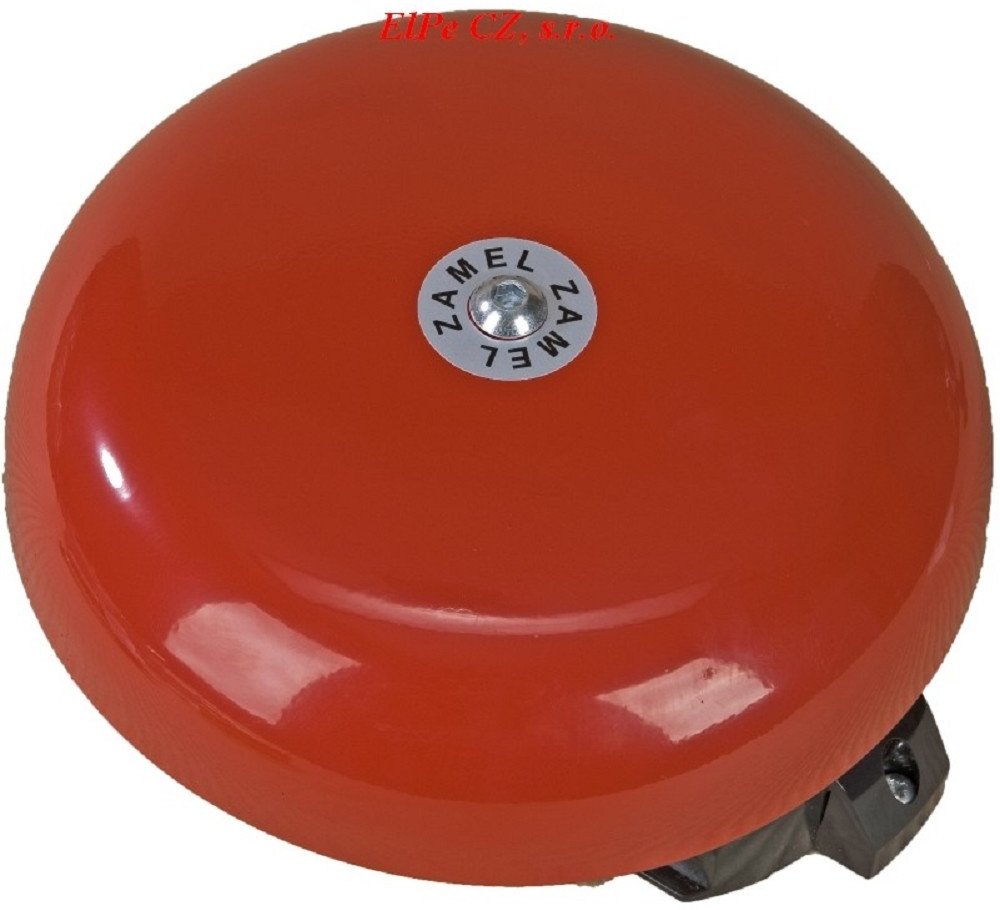 ŠKOLNÍ A ALARMOVÝ zvonek velký s červeně lakovanou ocelovou lebkou (150 mm). Ideální ve školách nebo jako alarmový signalizátor – hladina zvuku: cca. 93dB.