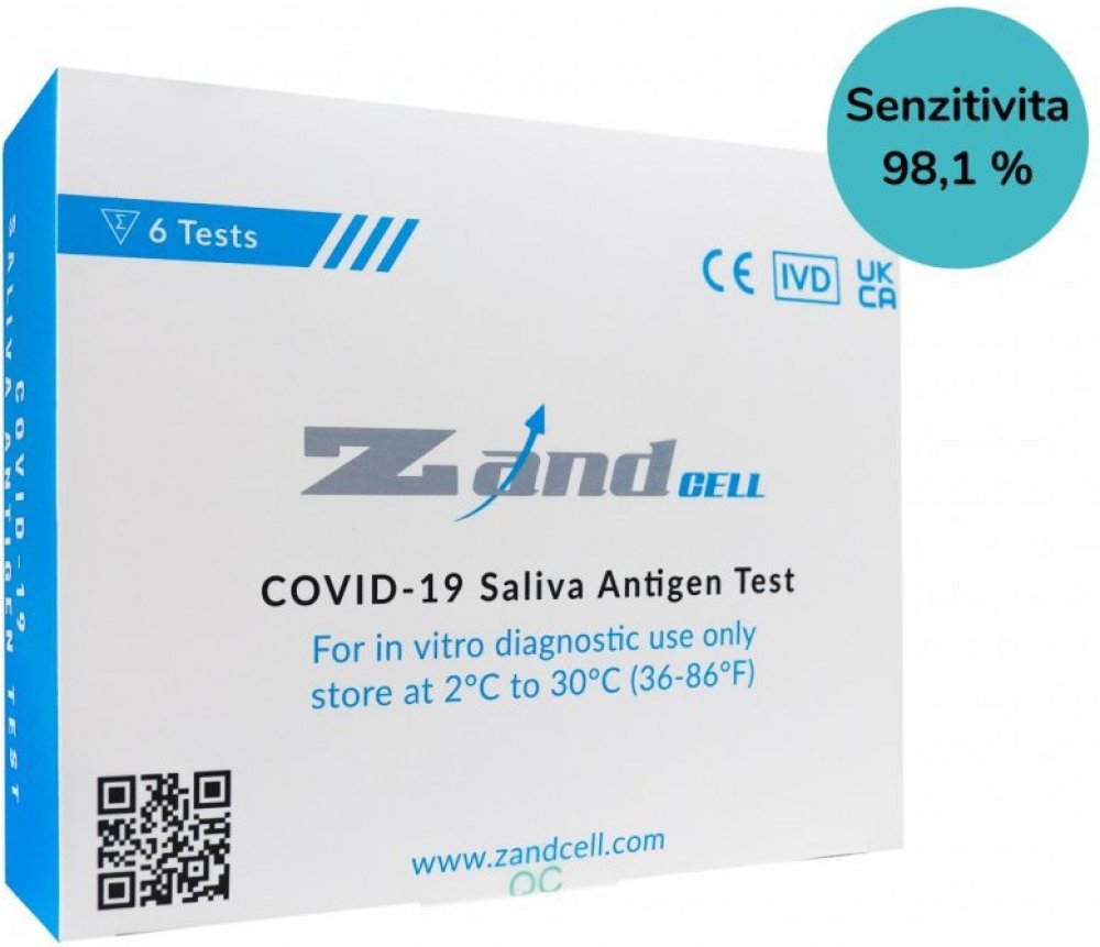 ZandCell COVID-19 Saliva Antigen Test s hypersenzitivním koloidním zlatem, je rychlý (výsledek do 10 minut) a spolehlivý POCT imunotest původem ze Švédska. Je určen pro přímou a kvalitativní detekci antigenu SARS-CoV-2 ve vzorcích slin nebo sputa z hlubokého hrdla od symptomatických nebo asymptomatických jedinců.