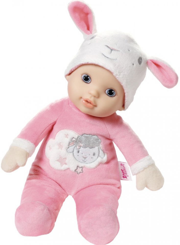 Heboučká panenka Baby Annabell® for babies Miláček je ideální kamarádkou na mazlení, tulení a usínání. Má měkké tělíčko a je oblečena do sametového oblečku v nádherné pastelové barvě s motivem ovečky. Na hlavičce má legrační čepičku ozdobenou legračními oušky, které jsou jako dělané pro první pokusy o uchopení.