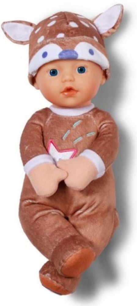 "Měkká panenka - zvířátko: díky měkkému tělíčku a měkké vinylové hlavičce je panenka v kostýmu jelínka skvělou kamarádkou na mazlení a je perfektní panenkou pro ty úplně nejmenší děti už od narození.