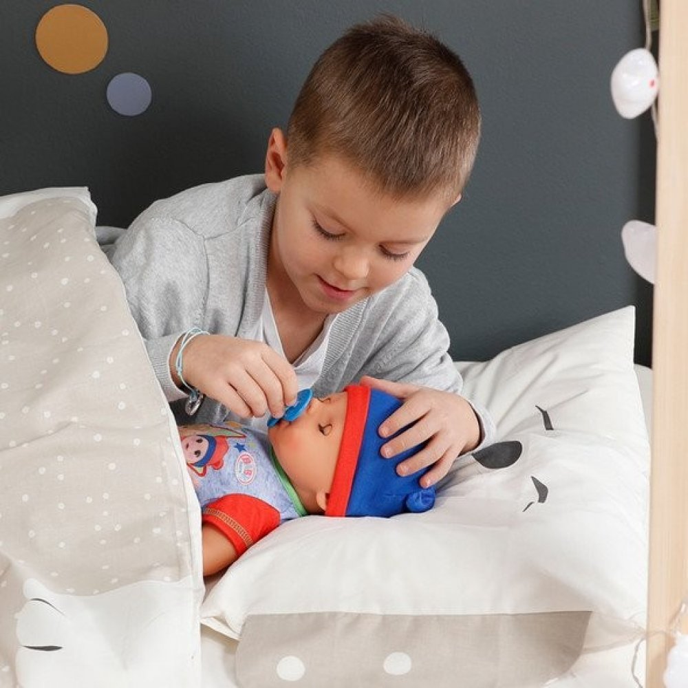 Jonas ale dokáže ještě víc: má pohyblivé klouby a můžete ho vzít i do vany. Nyní dokonce uschne rychleji, než kdy dříve: abyste panenku po hraní dobře vyčistili, je k tomu možné odejmout jednu nohu a vytvořit tím větší otvor pro čištění panenky. Voda tak z panenky snadněji odteče. Pro ještě zajímavější hru si Jonas do svého nového domova kromě lahvičky, dudlíku, talířku s destičkou s obrázkem jídla a nočníku s destičkou s obrázkem čůrání a kakání přináší také plenku, rodný list, arch samolepek a dva náramky přátelství – jeden pro panenku a jeden pro její malou maminku – na důkaz dlouhého a láskyplného kamarádství mezi dítětem a panenkou.V kvalitě BABY born, která těší celé generace dětí už od roku 1991