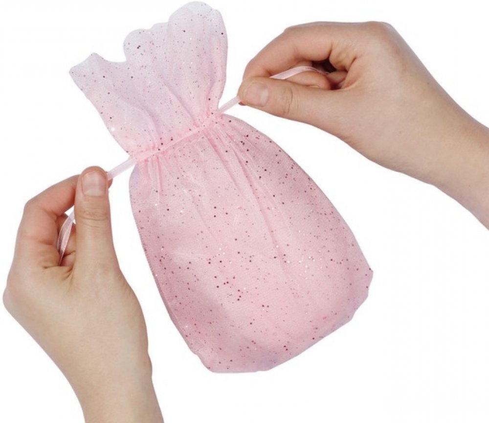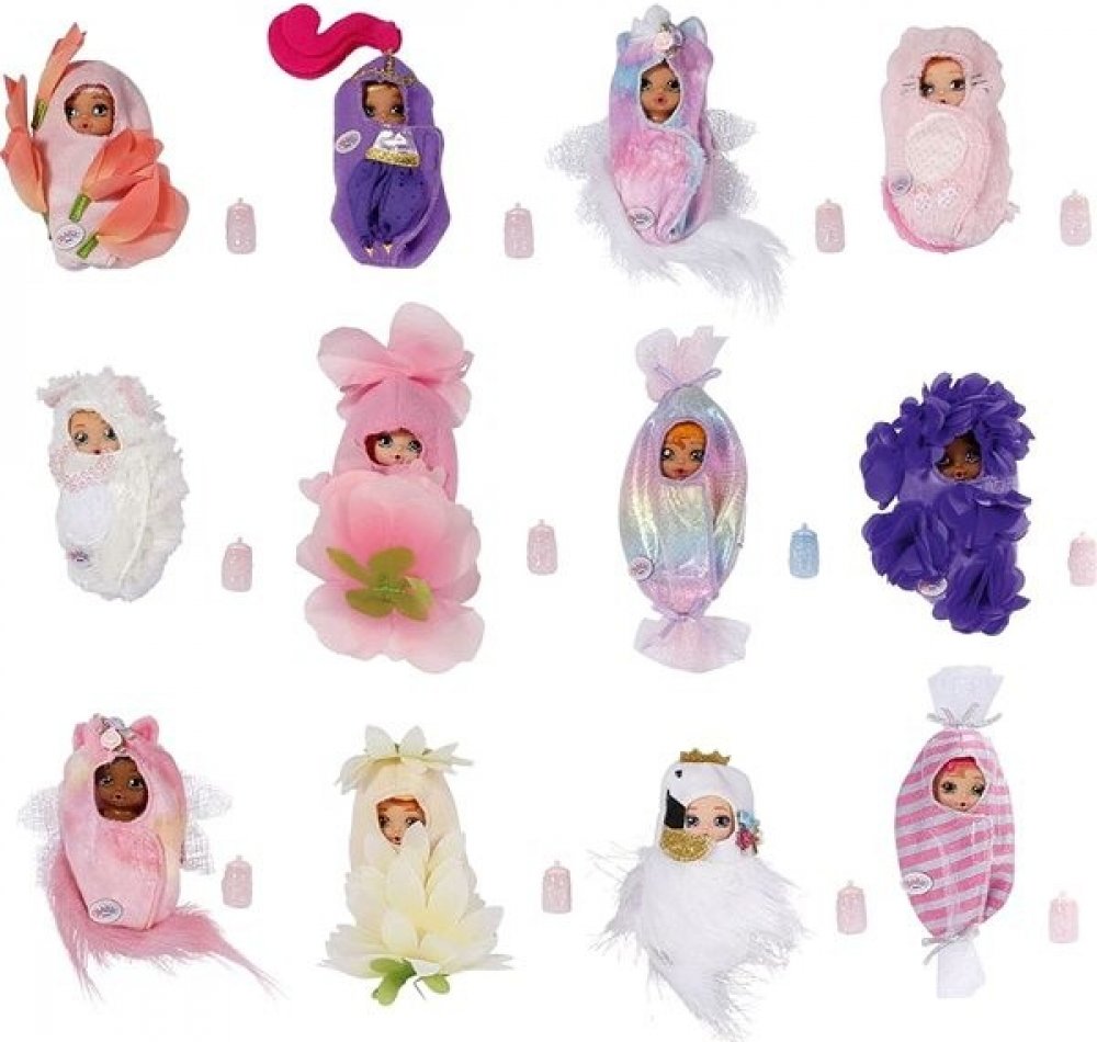 Nejprve rozbal zavinovačku a podívej se, v jakém je miminko fusáčku. Novorozený miláček může podřimovat jako kytička, kočička nebo jednorožec. Očička má stále zavřená. Chceš-li zjistit, jakou mají barvu, jemně mu otři víčka vlhkým hadříkem. Pak opatrně otevři fusáček a uvidíš, jaký má miminko tón kůže, barvu vlasů a jaký má účes. A podívej na ten úžasný třpytkový efekt! Je to holčička nebo chlapeček? A jakou barvu má jeho lahvička?