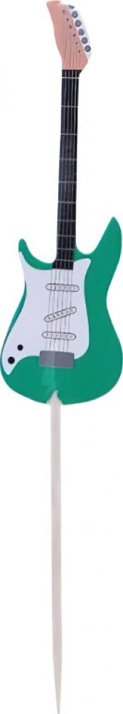 Zápich do dortu ve tvaru elektrické kytary v zelené barvě.