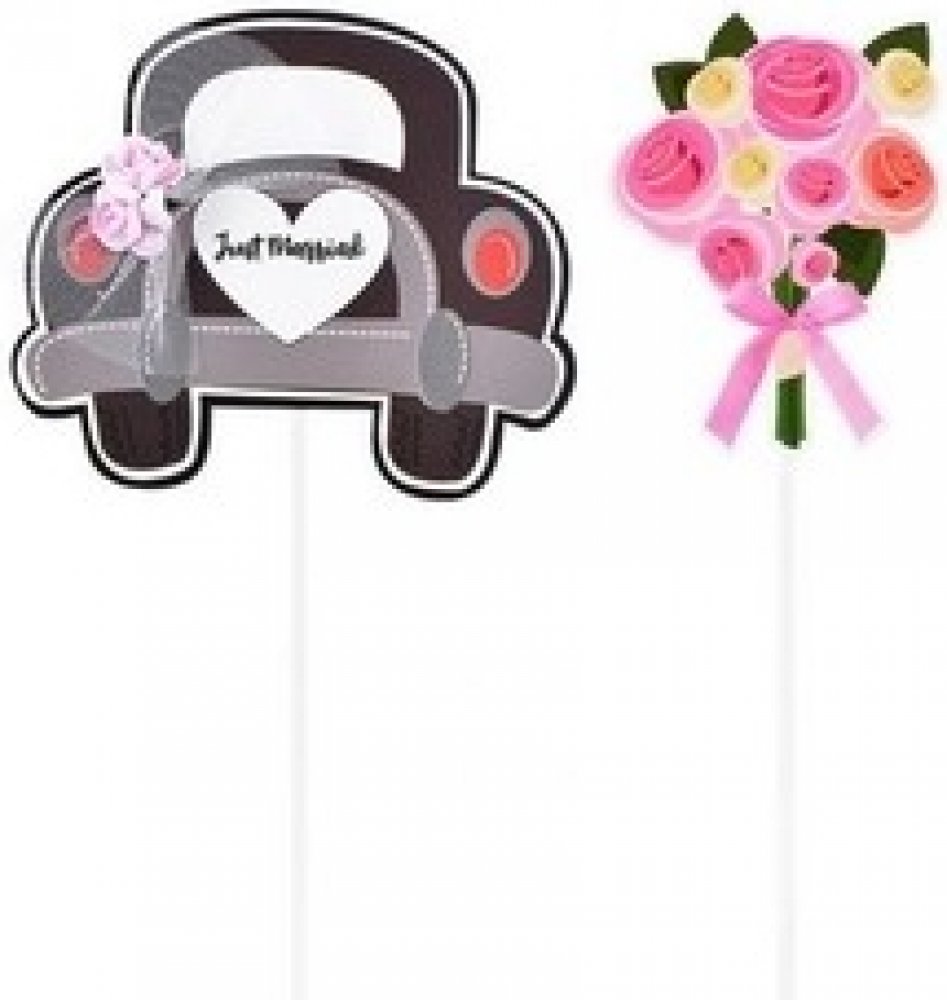 Zápich do dortu (papírový) - Svatební kytice + auto / 2 ks