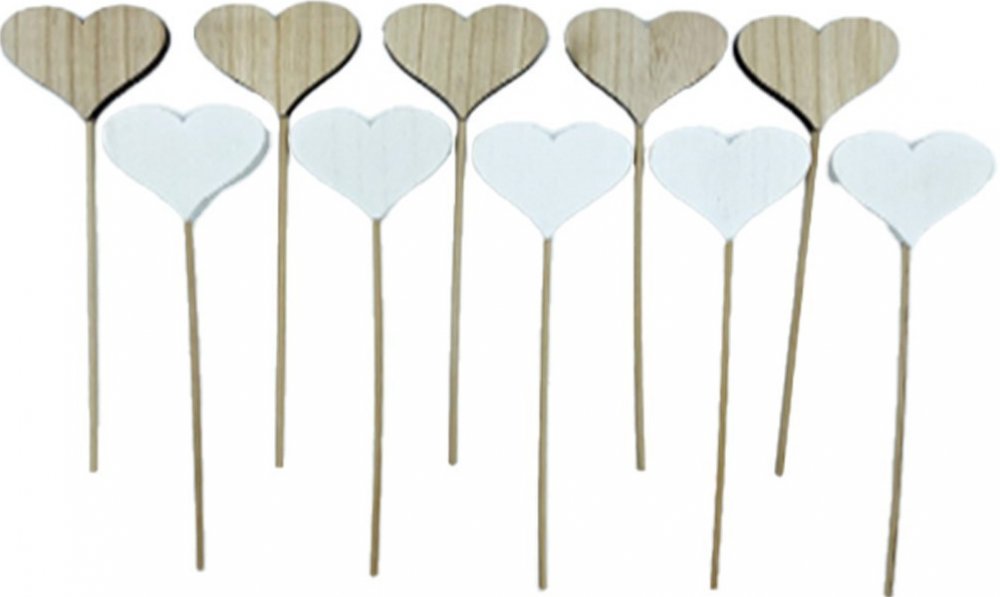 Zápich dřevo 70mm+špejle srdíčko mix, přírodní, bílá