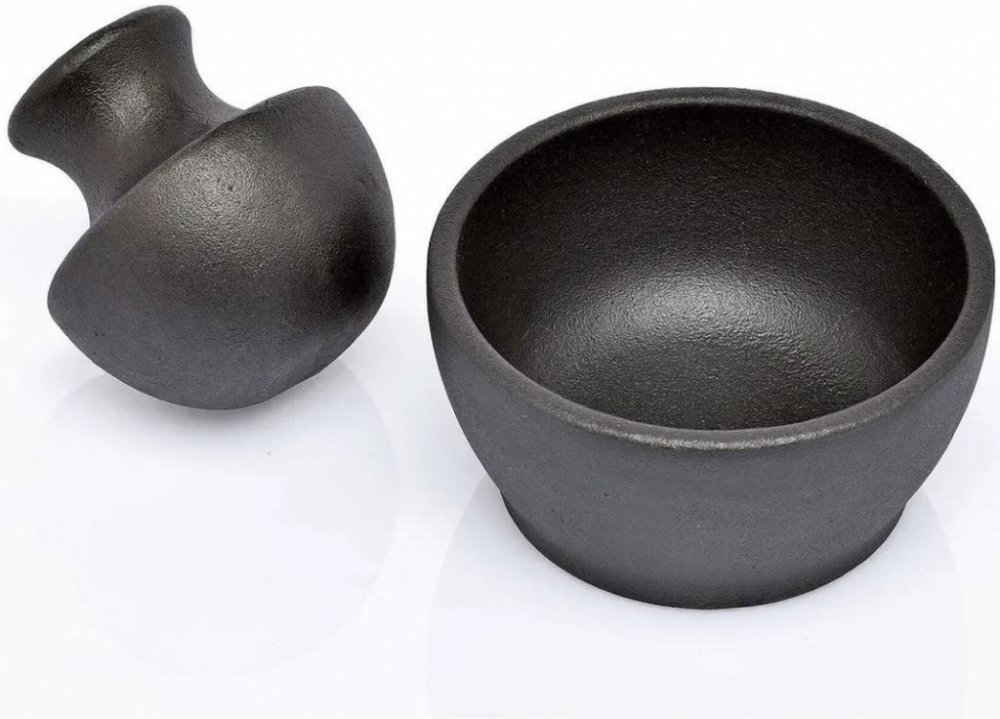Praktický a kvalitní litinový hmoždíř slouží k drcení koření, čerstvých i sušených bylinek.