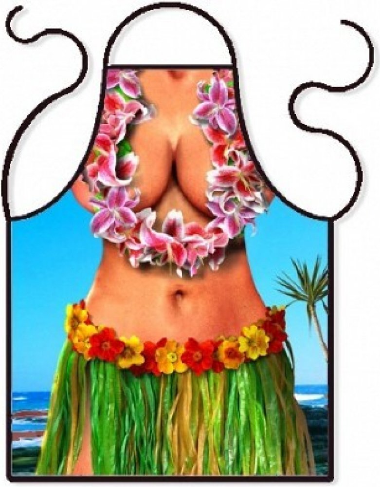 Kuchyňská zástěra na vaření - Havajská dívka je vtipný dárek pro ženu, která se chce v kuchyni či za barem líbit.