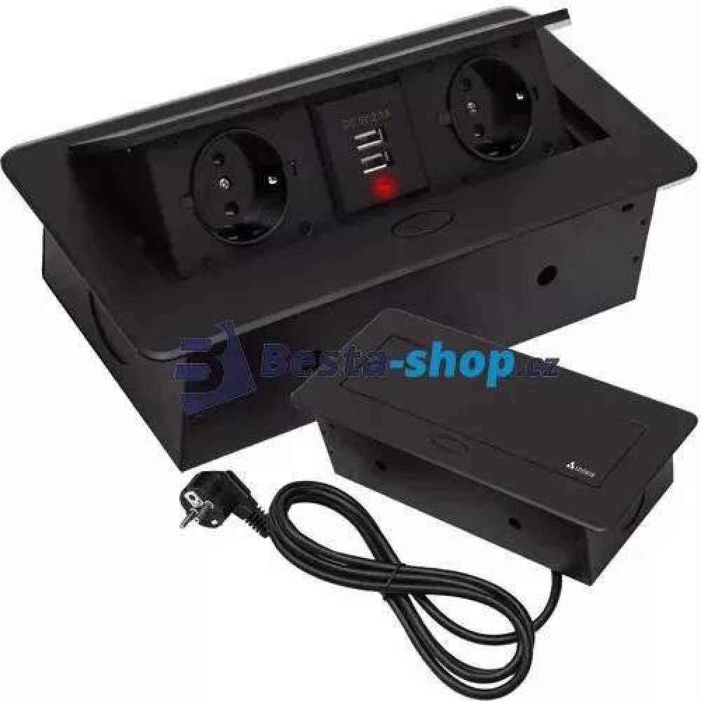 Zásuvka skrytá v horní části dvojitá + 2x USB 1,9 m černá