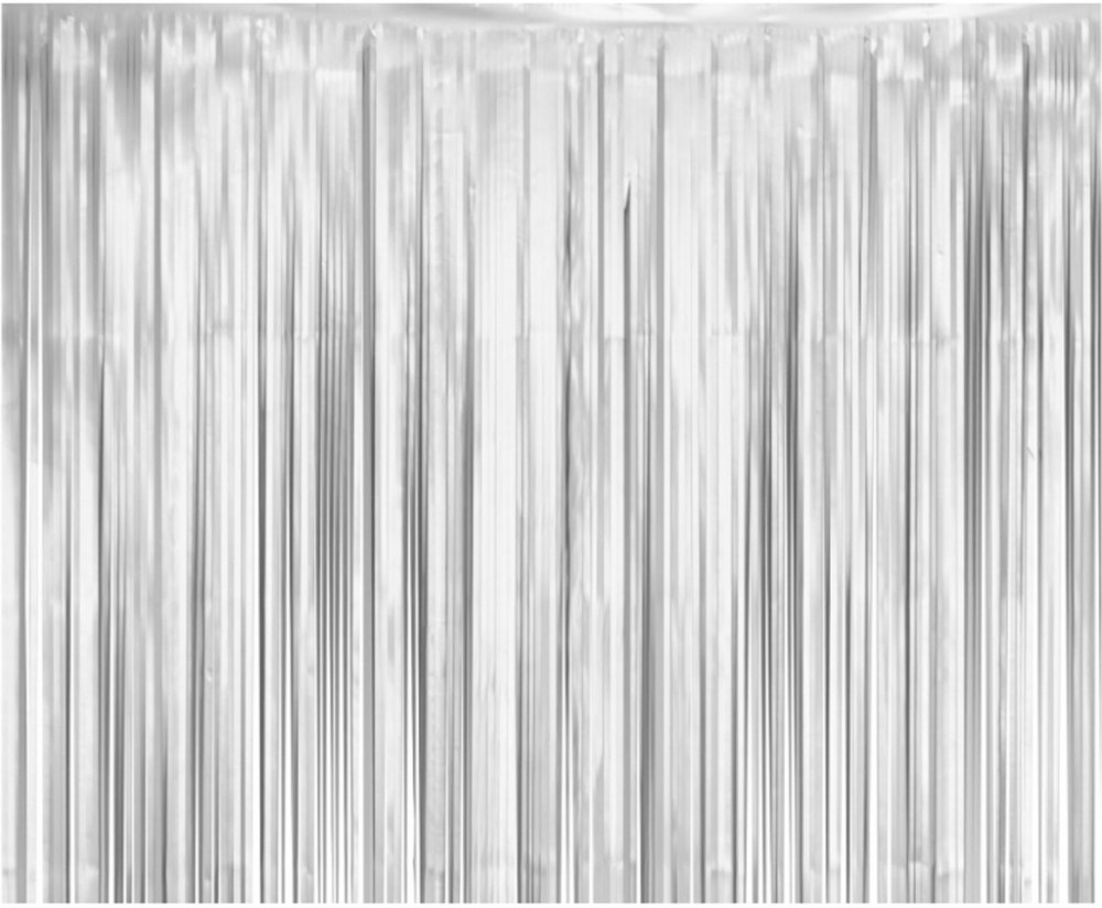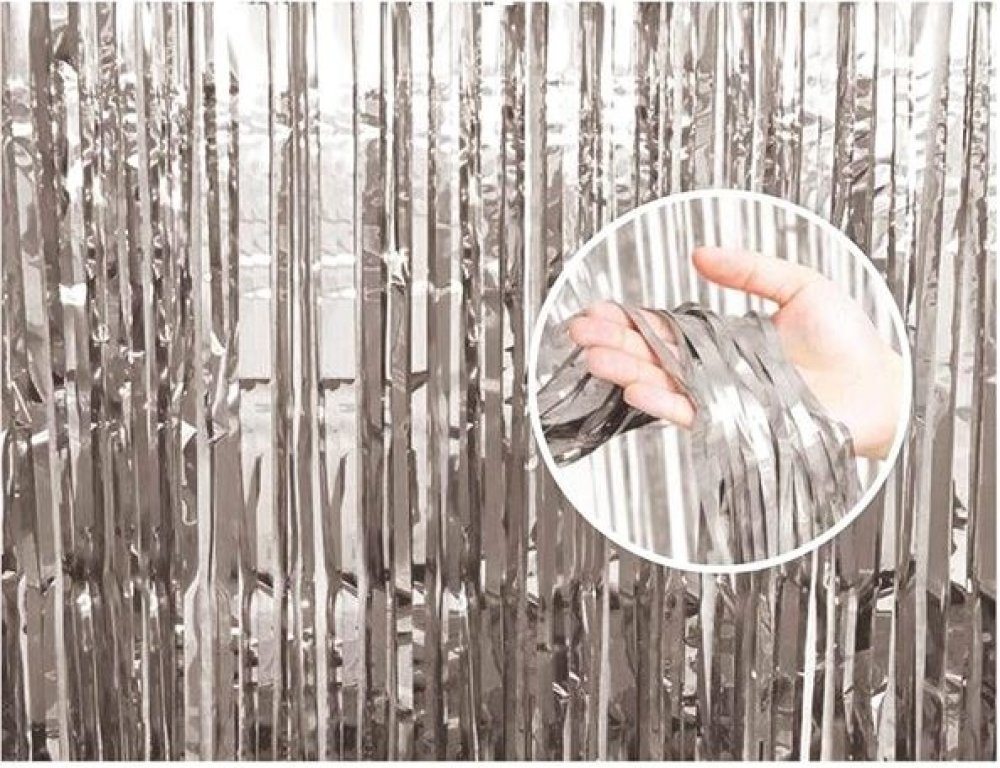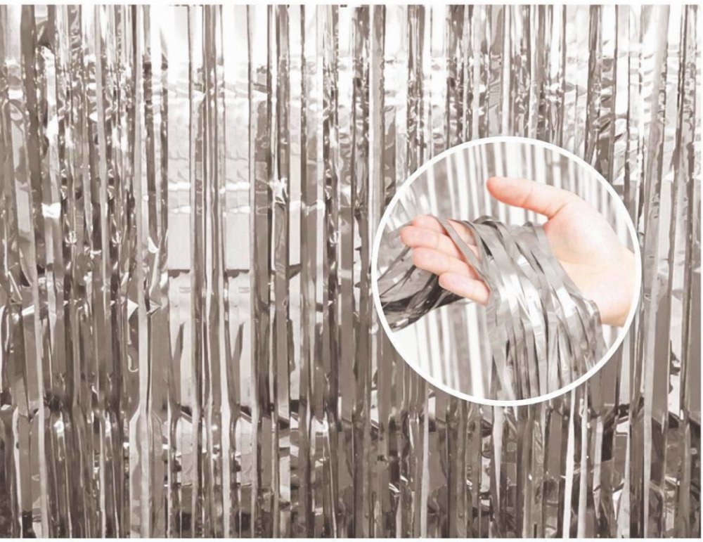 Stříbrný dekorativní závěs nejen na párty. Rozměry 90 x 240 cm.