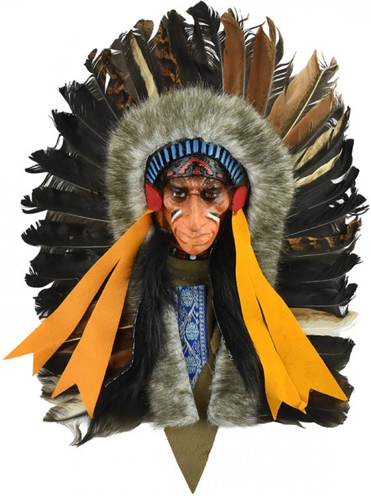 Indiánští náčelníci byli vůdci a moudří rádci svých kmenů, kteří nesli odpovědnost za rozhodování, ochranu a blaho komunity. Jejich autorita vycházela z osobní ctnosti, zkušeností a schopnosti vést, spíše než z dědičného práva. Často byli vnímáni jako strážci tradic, duchovní vůdci a zprostředkovatelé mezi lidmi a přírodou. Náčelníci byli respektováni pro svou statečnost, spravedlnost a schopnost vyjednávat s ostatními kmeny nebo kolonizátory, a jejich role byla klíčová pro udržení harmonie a rovnováhy v kmeni.S dekorací je dodáván háček pro zavěšení na zeď.