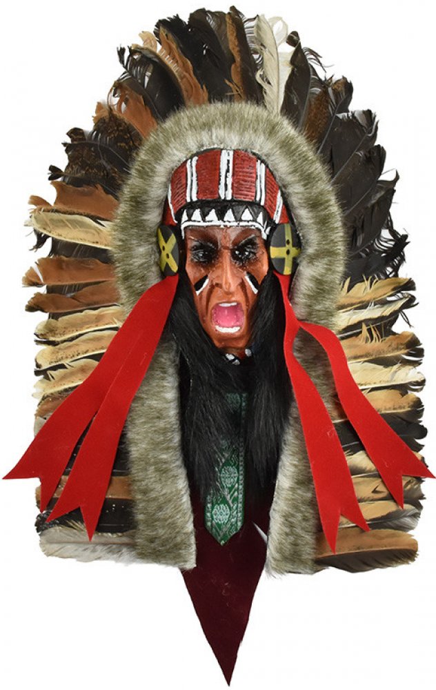 Indiánští náčelníci byli vůdci a moudří rádci svých kmenů, kteří nesli odpovědnost za rozhodování, ochranu a blaho komunity. Jejich autorita vycházela z osobní ctnosti, zkušeností a schopnosti vést, spíše než z dědičného práva. Často byli vnímáni jako strážci tradic, duchovní vůdci a zprostředkovatelé mezi lidmi a přírodou. Náčelníci byli respektováni pro svou statečnost, spravedlnost a schopnost vyjednávat s ostatními kmeny nebo kolonizátory, a jejich role byla klíčová pro udržení harmonie a rovnováhy v kmeni.S dekorací je dodáván háček pro zavěšení na zeď.