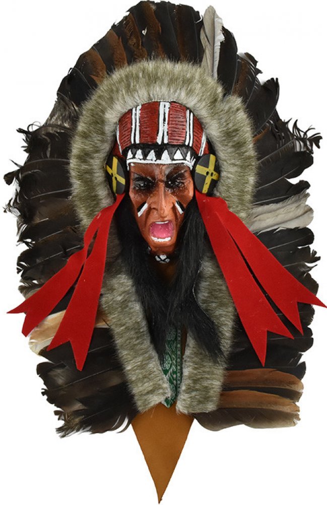 Indiánští náčelníci byli vůdci a moudří rádci svých kmenů, kteří nesli odpovědnost za rozhodování, ochranu a blaho komunity. Jejich autorita vycházela z osobní ctnosti, zkušeností a schopnosti vést, spíše než z dědičného práva. Často byli vnímáni jako strážci tradic, duchovní vůdci a zprostředkovatelé mezi lidmi a přírodou. Náčelníci byli respektováni pro svou statečnost, spravedlnost a schopnost vyjednávat s ostatními kmeny nebo kolonizátory, a jejich role byla klíčová pro udržení harmonie a rovnováhy v kmeni.S dekorací je dodáván háček pro zavěšení na zeď.